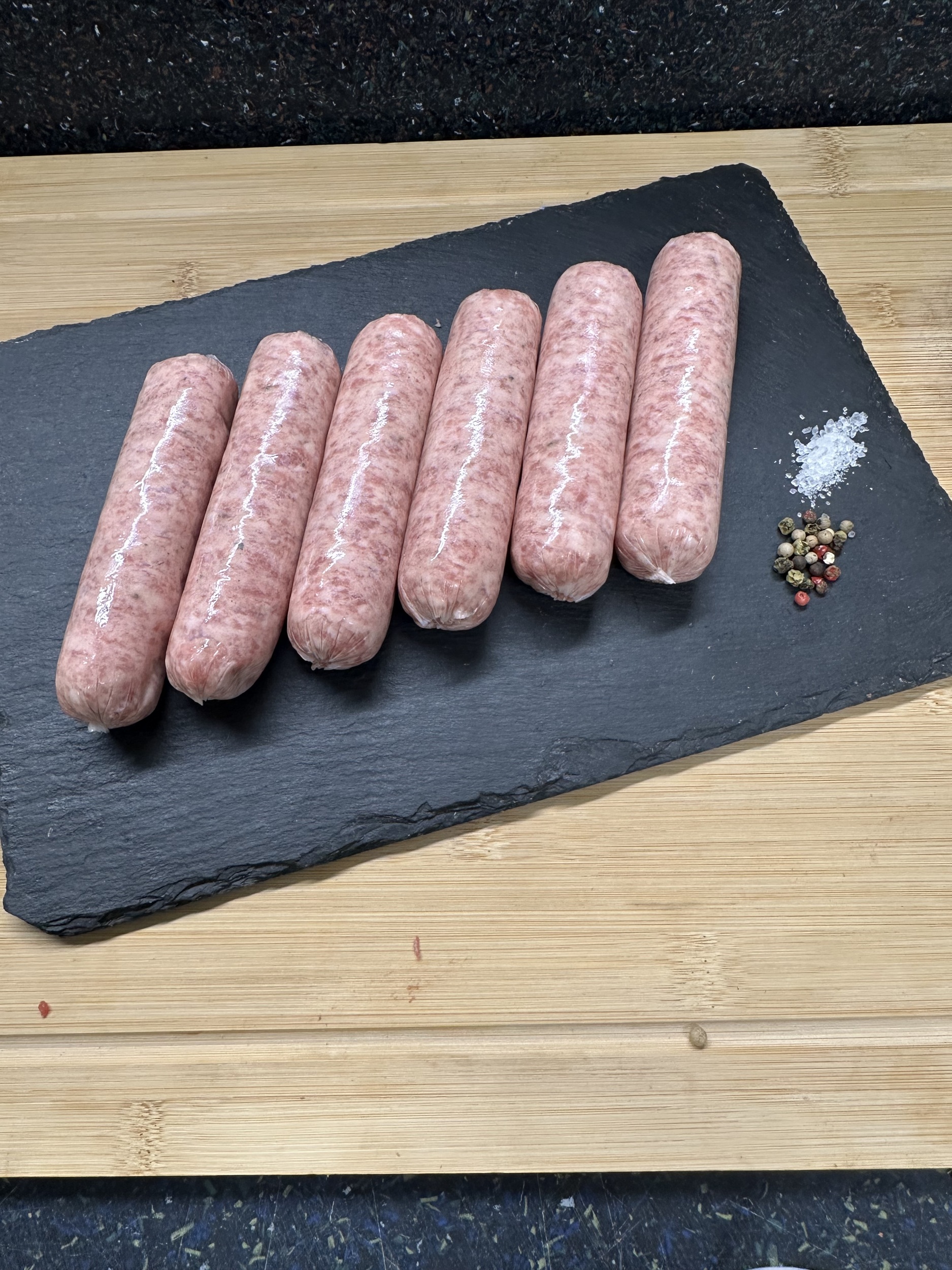 Toad in the hole, chopped up in a pasta sauce or good ol’ Bangers and Mash, these versatile sausages will complement all of your favourite sausage based meals. We love them served with gravy made with finely sliced red onions and a splash of red wine, creamy mash and peas.